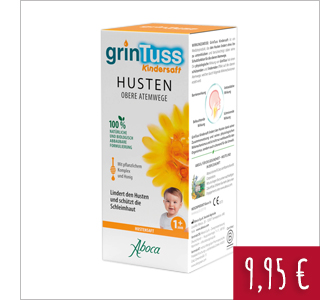 GrinTuss Kindersaft lindert Husten bei Kindern ab 1 Jahr auf natürliche Weise und schützt die Schleimhäute.