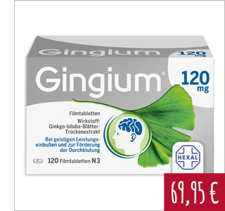 Wirkstoff: Ginkgoblätter-Trockenextrakt 120 mg.
